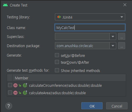 1. Since we are going to test the MyCalc() class first, create the class in advance in @Before.