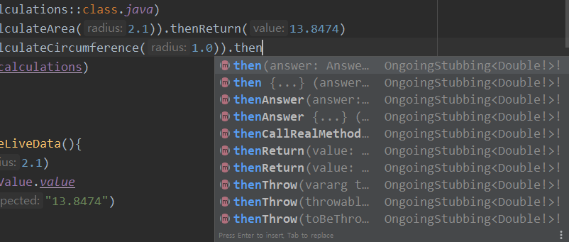 2. Then, after calling the desired function in the function of the class, use the functions such as assertThat() and isEqualTo() of the Truth testing library to test whether the value you want comes out. In assertThat(), you can put the value you want to test.
