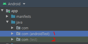 There are two types of unit tests in Android: instrumentation test (androidTest) and local unit test (test).