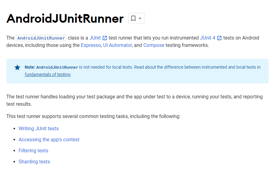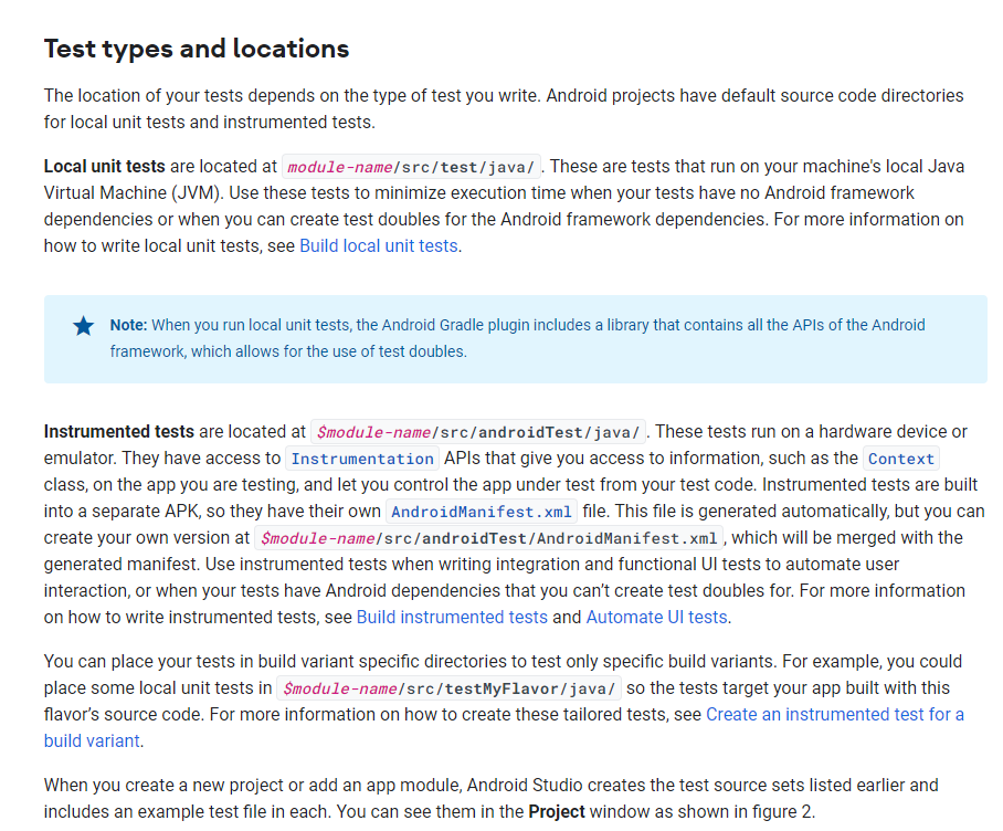 So far we have looked at local unit testing (test), now let's look at an example of an instrumentation test (androidTest) that depends on Android.